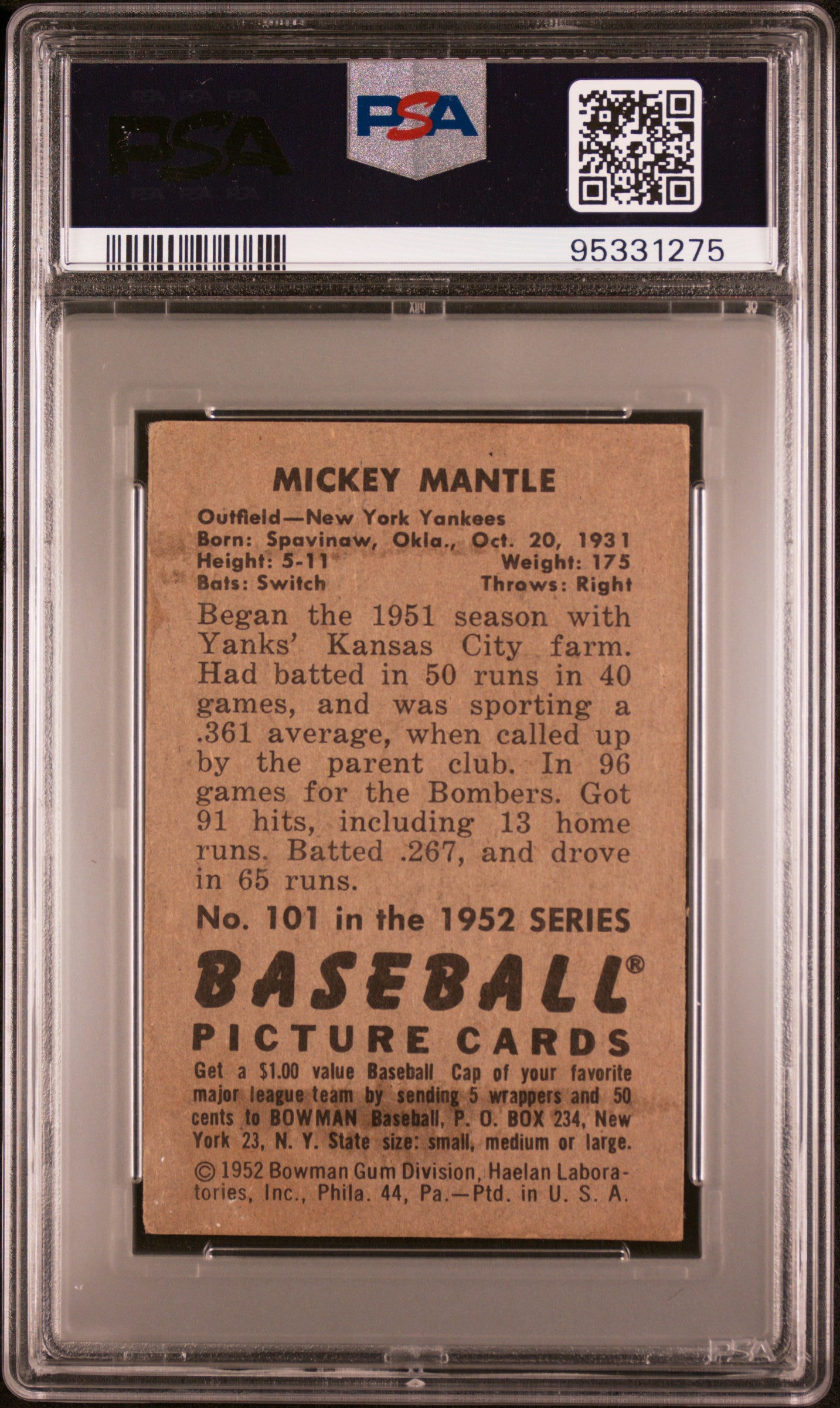 You are purchasing a 1952 Bowman Mickey Mantle #101 PSA 2.