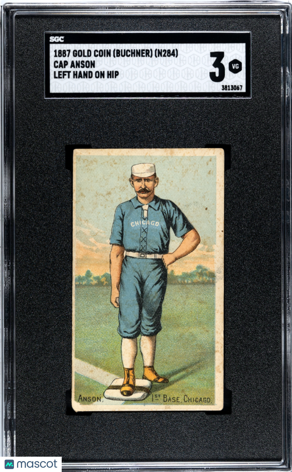 You are purchasing a 1887 Gold Coin (Buchner) (N284) Cap Anson Left Hand On Hip SGC 3.