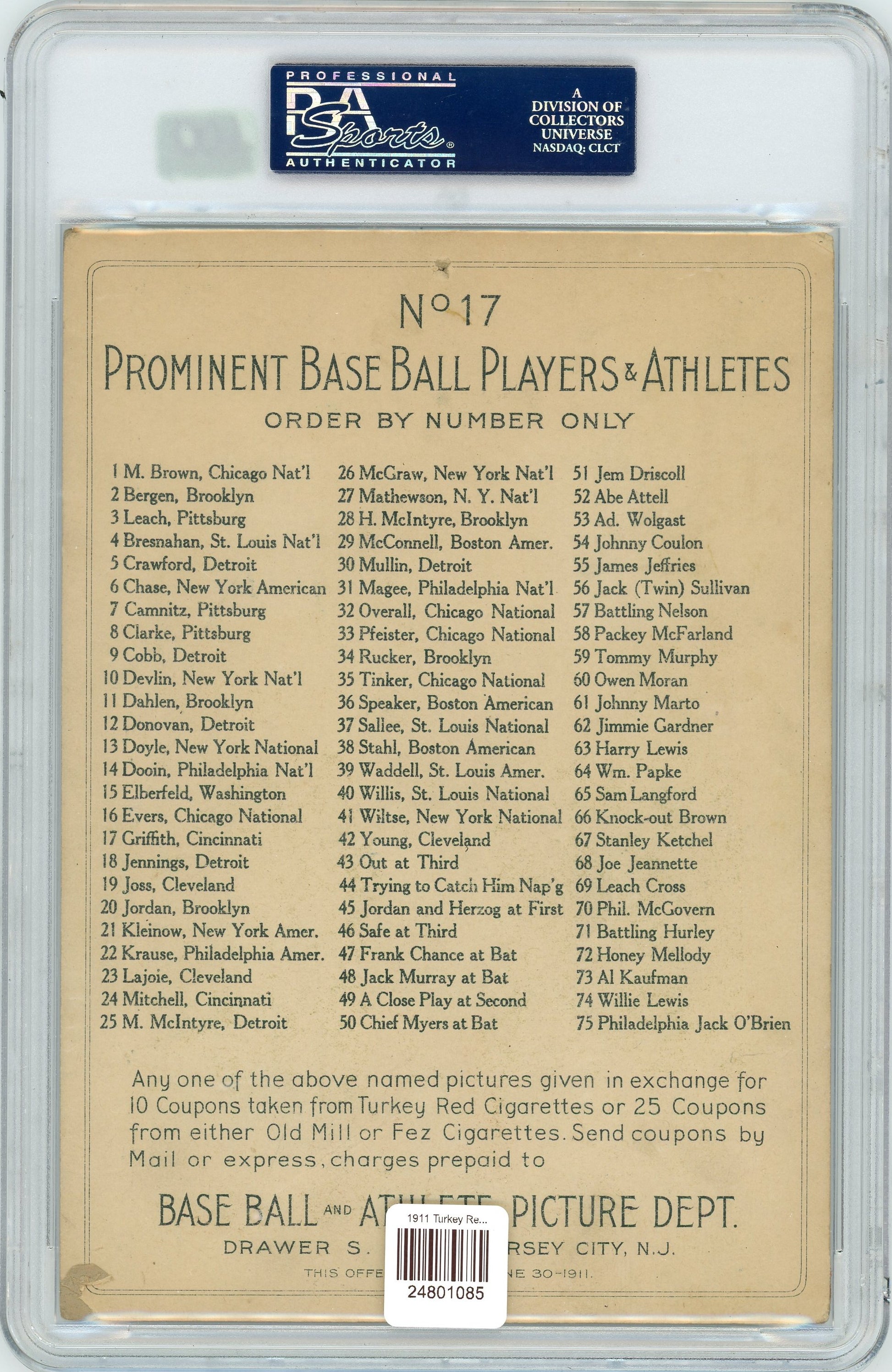 You are purchasing a 1911 Turkey Red Cabinets T3 & T9 Clark Griffith #17 Checklist Back PSA 1.