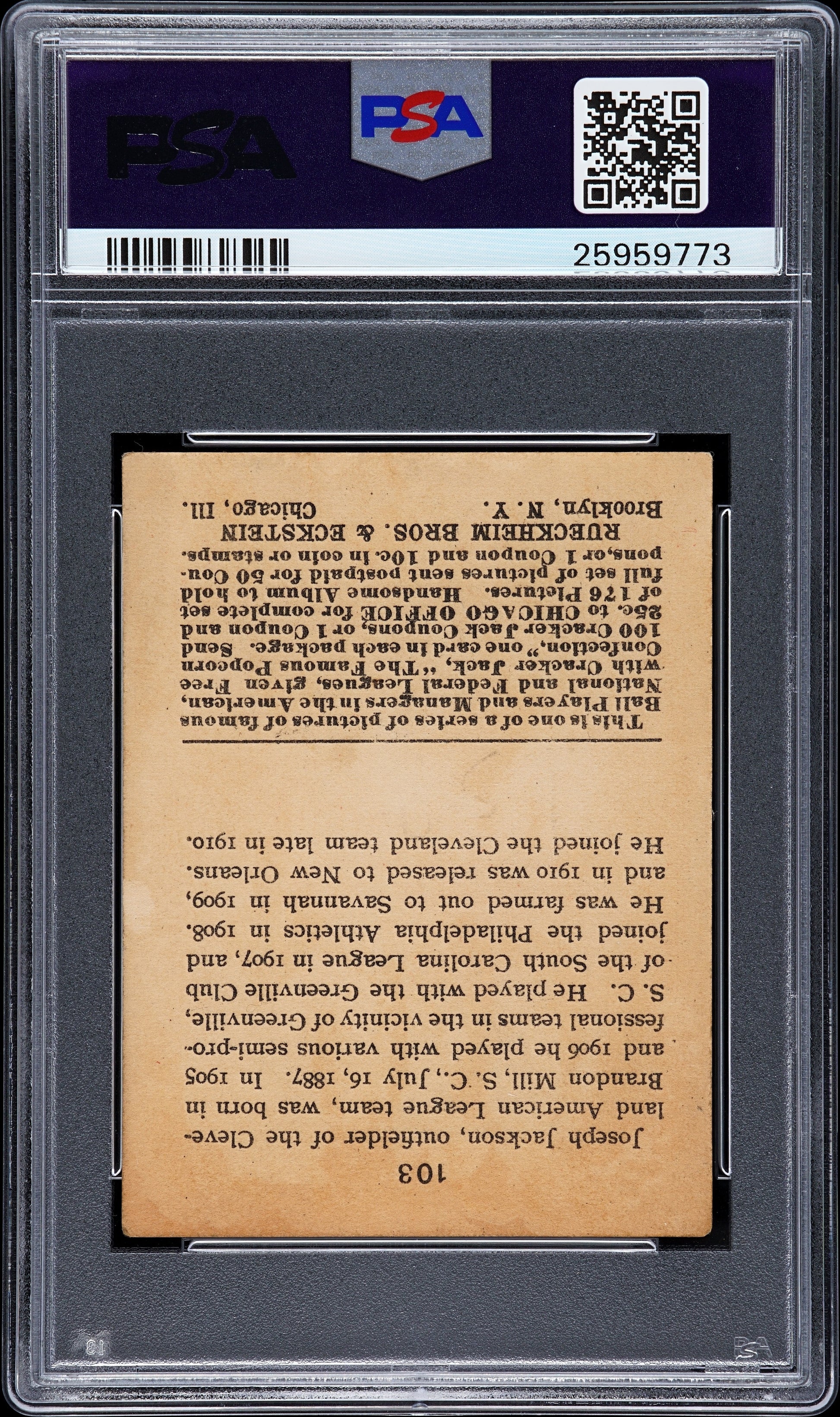 You are purchasing a 1915 Cracker Jack Joe Jackson #103 PSA 4 MK.