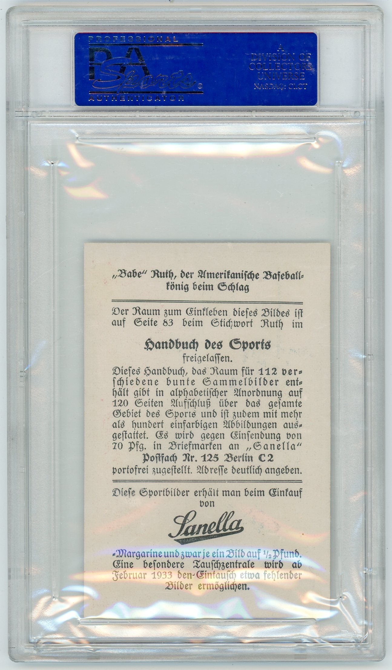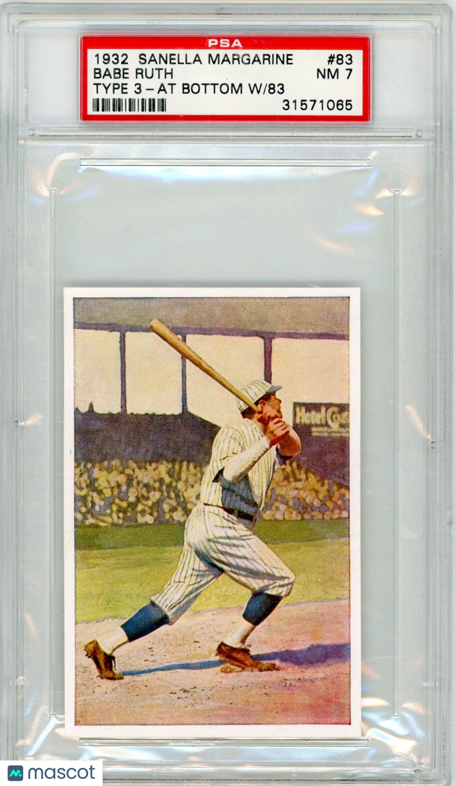 You are purchasing a 1932 Sanella Margarine Babe Ruth #83 Type 3 At Bottom W 83 PSA 7.