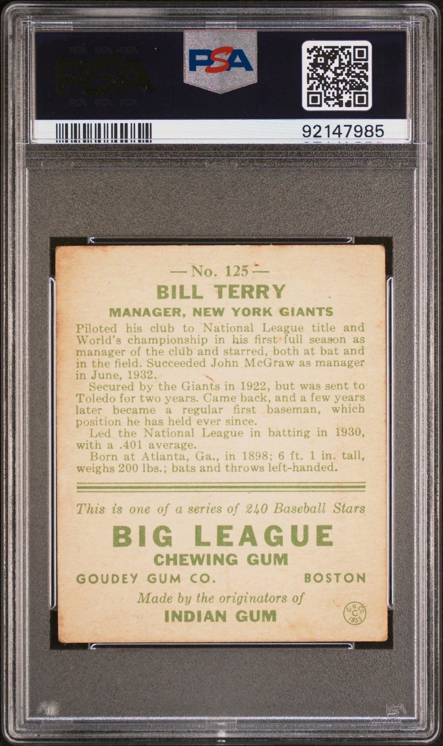 You are purchasing a 1933 Goudey Bill Terry #125 PSA 3.