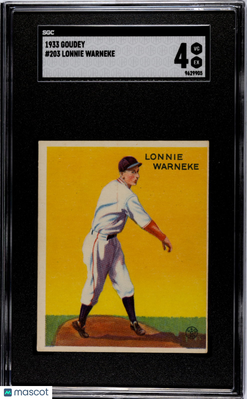 You are purchasing a 1933 Goudey Lonnie Warneke #203 SGC 4.