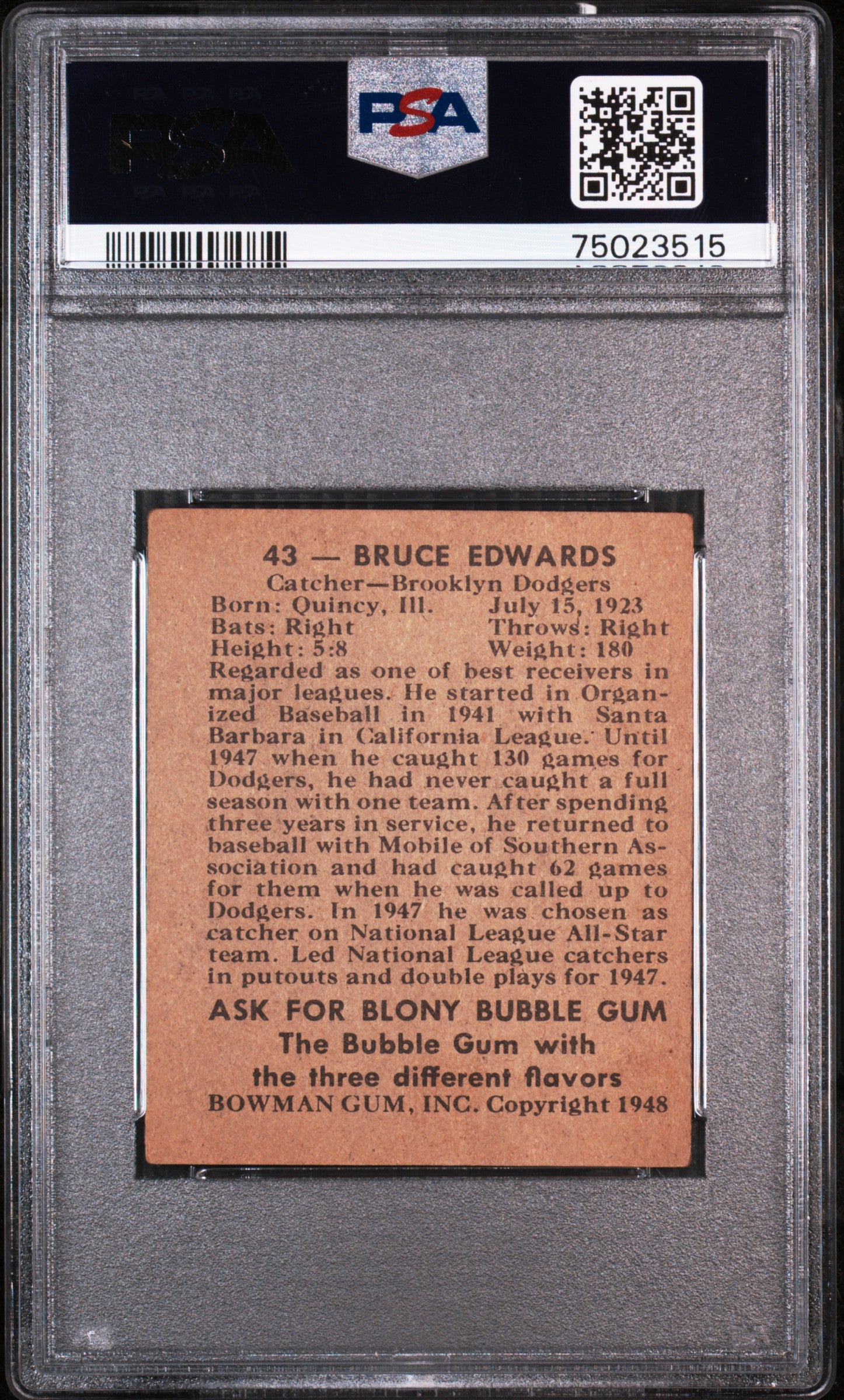 1948 Bowman Bruce Edwards #43 PSA 4