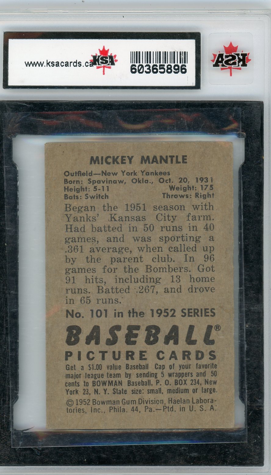 You are purchasing a 1952 Bowman Mickey Mantle #101 KSA 6.