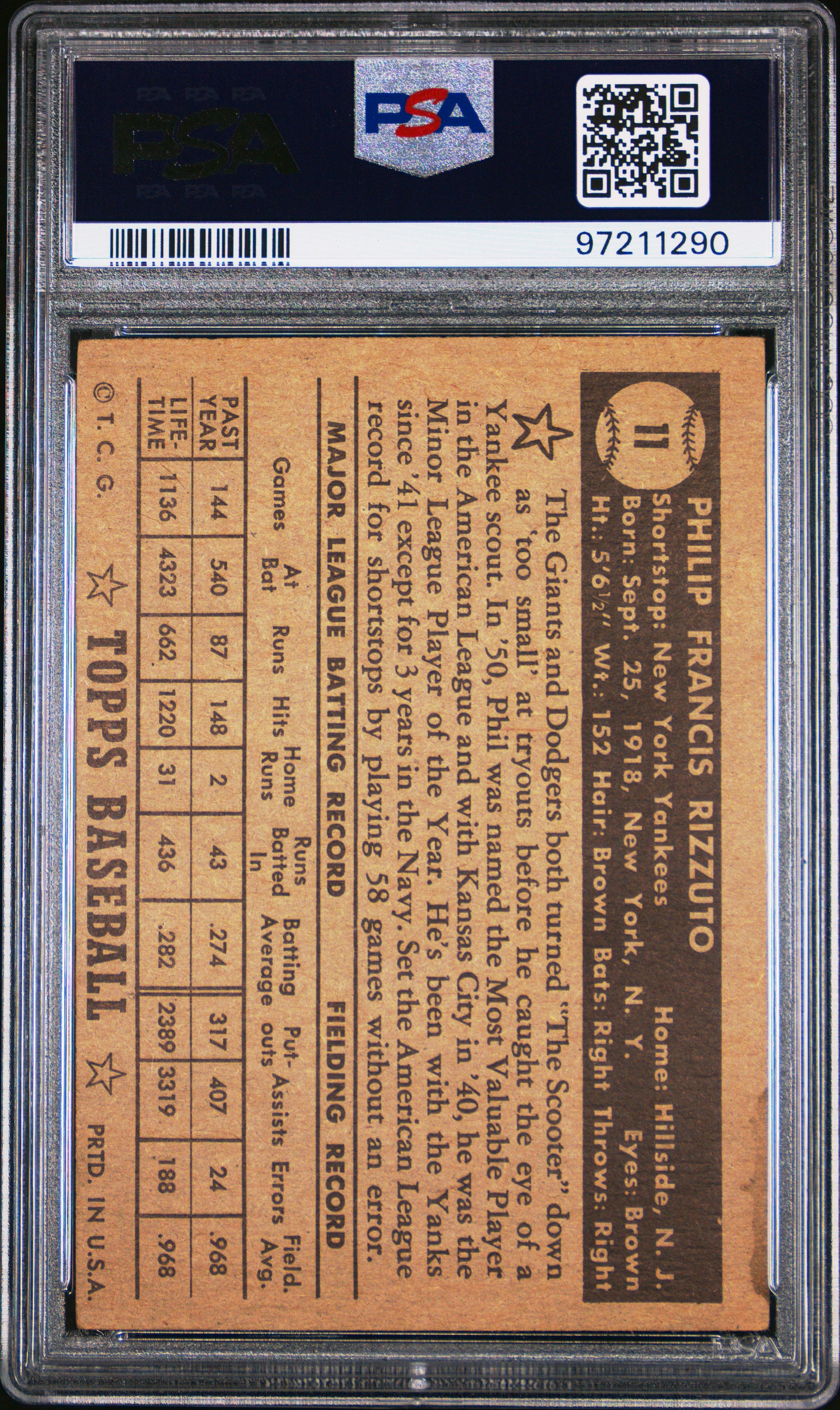 1952 Topps Phil Rizzuto #11 Black Back PSA 4