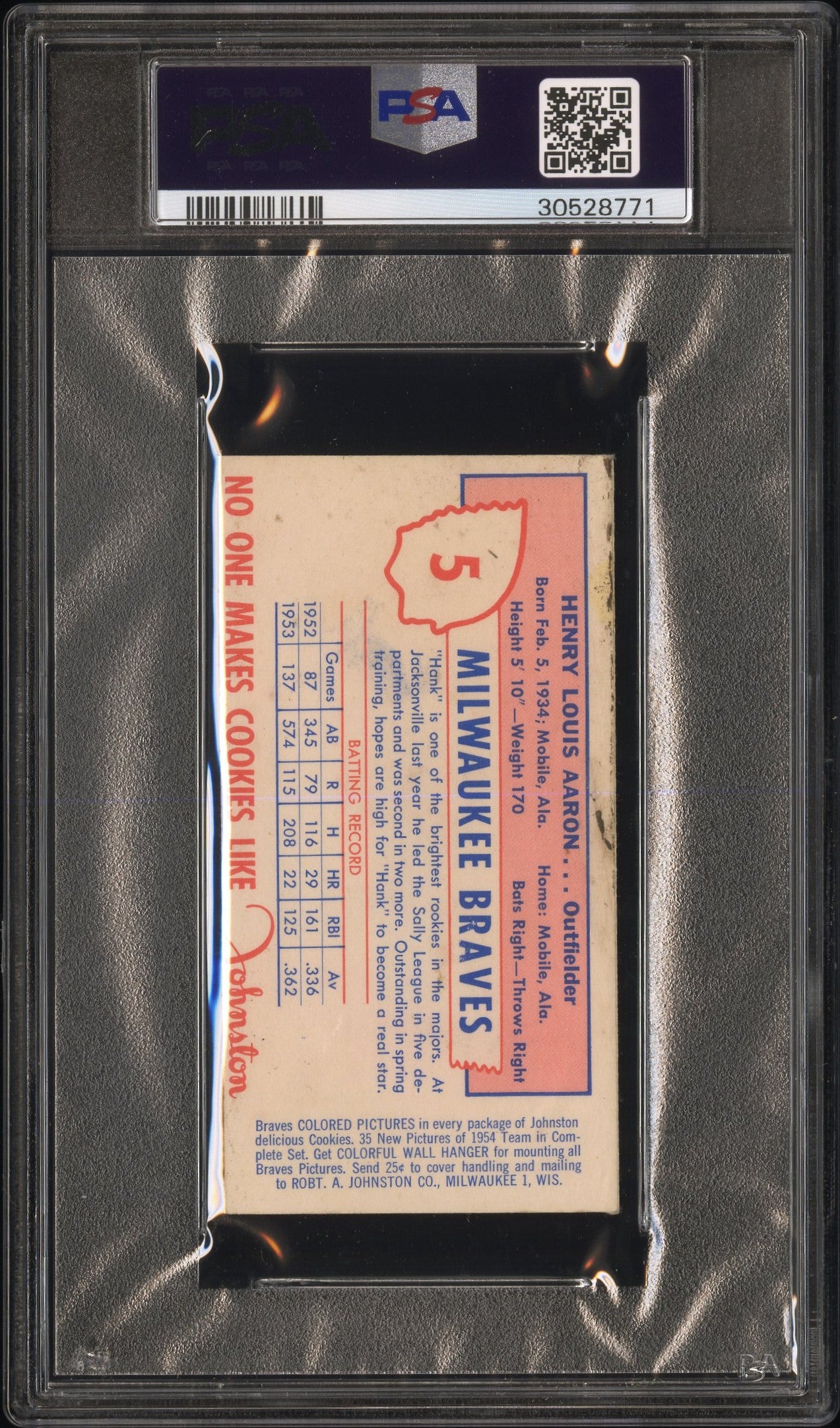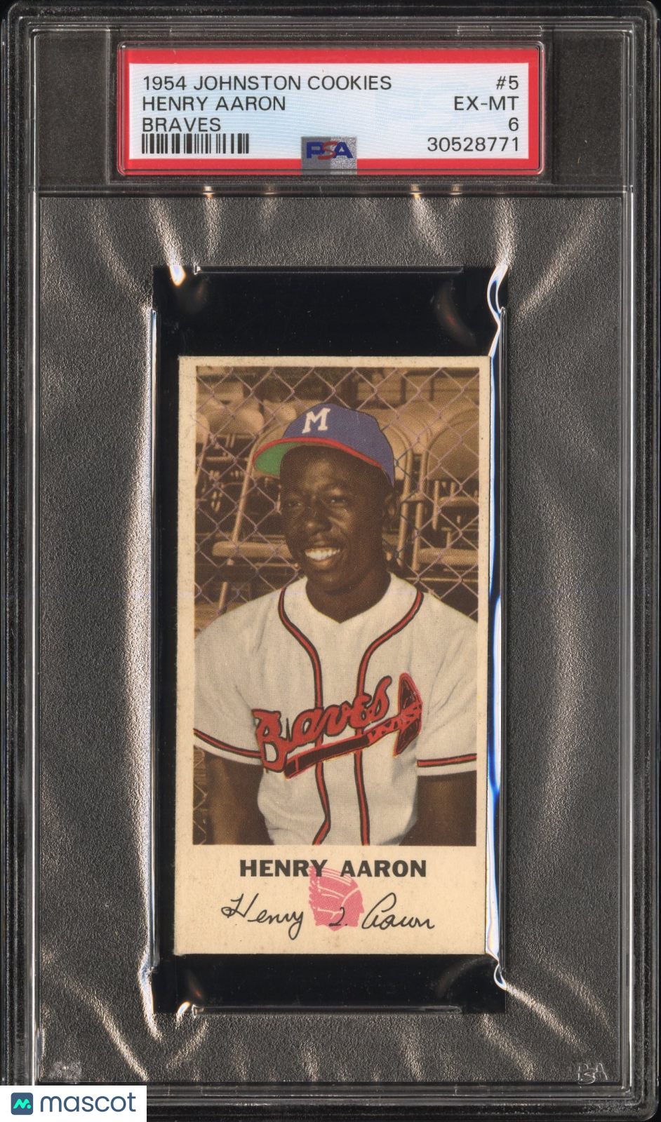 You are purchasing a 1954 Johnston Cookies Braves Henry Aaron #5 PSA 6.