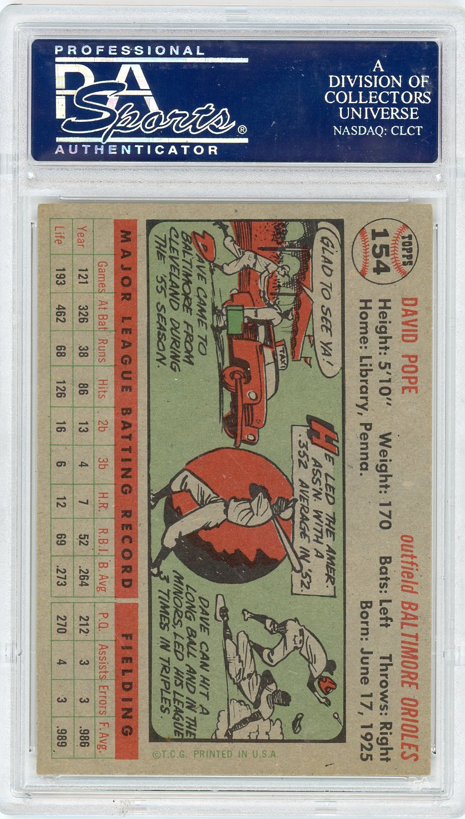 You are purchasing a 1956 Topps Dave Pope #154 Gray Back PSA 7.