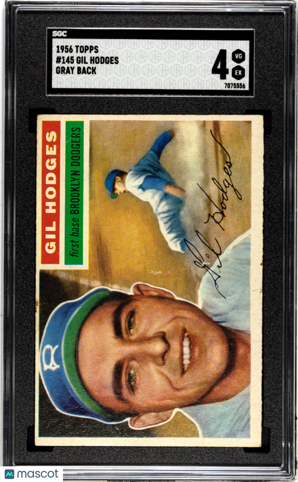 You are purchasing a 1956 Topps Gil Hodges #145 Gray Back SGC 4.