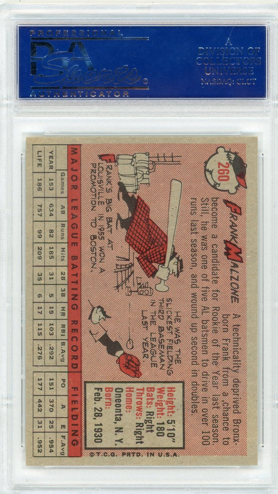 You are purchasing a 1958 Topps Frank Malzone #260 PSA 8.