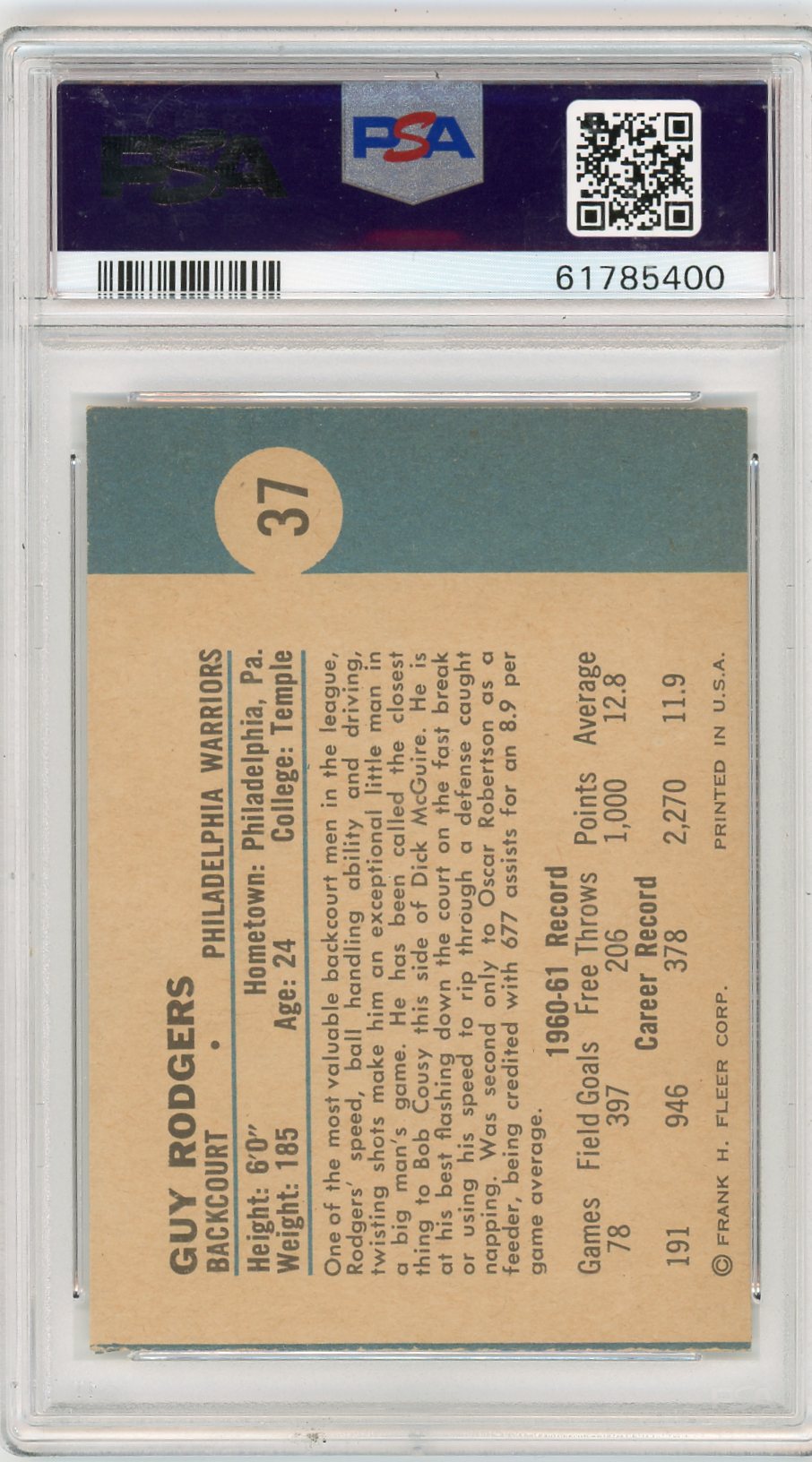You are purchasing a 1961 Fleer Guy Rodgers #37 PSA 5.