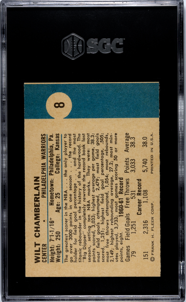 You are purchasing a 1961 Fleer Wilt Chamberlain #8 SGC 8.5.