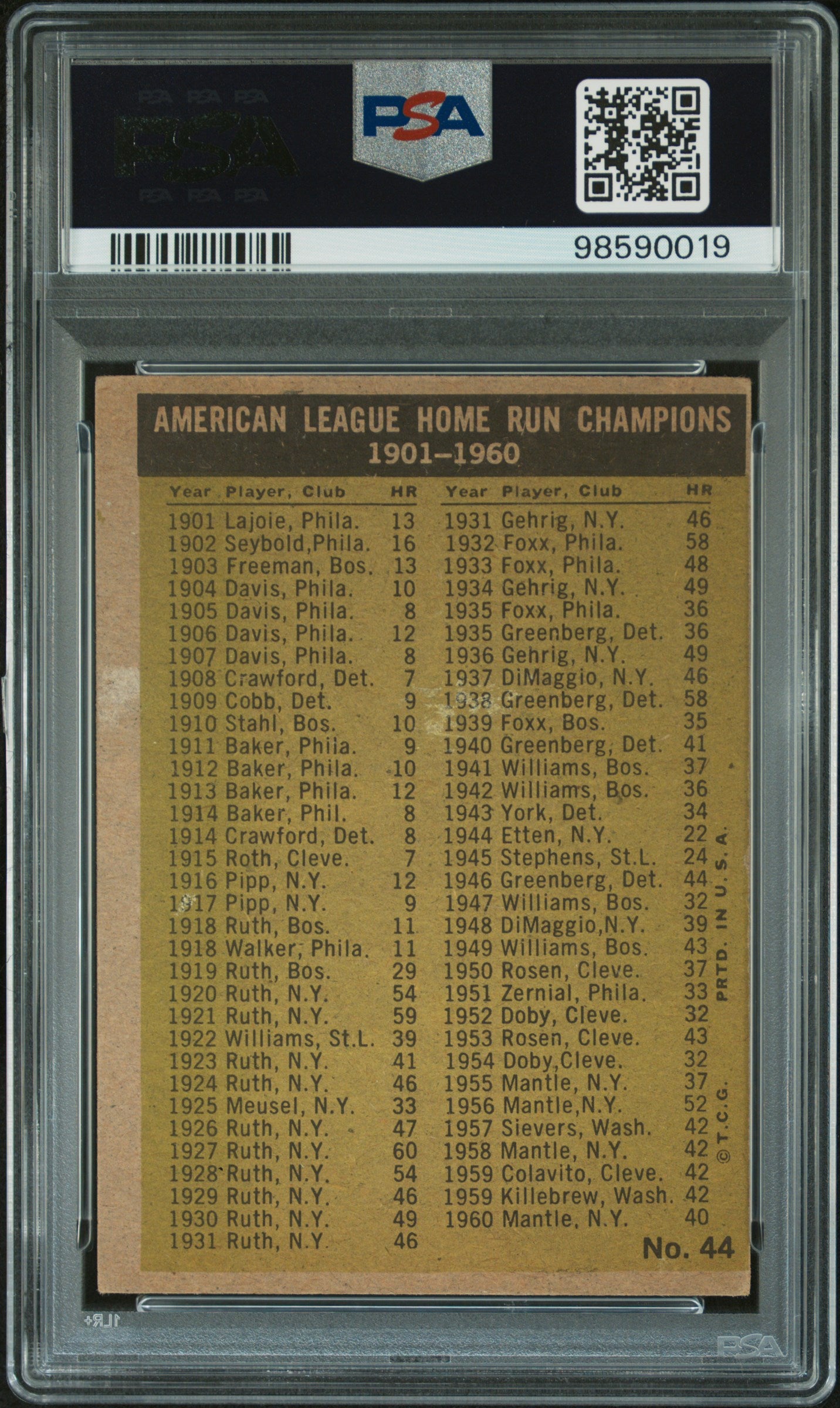1961 Topps Al Home Run Leaders #44 PSA 4