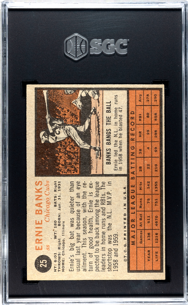 You are purchasing a 1962 Topps Ernie Banks #25 SGC 6.5.