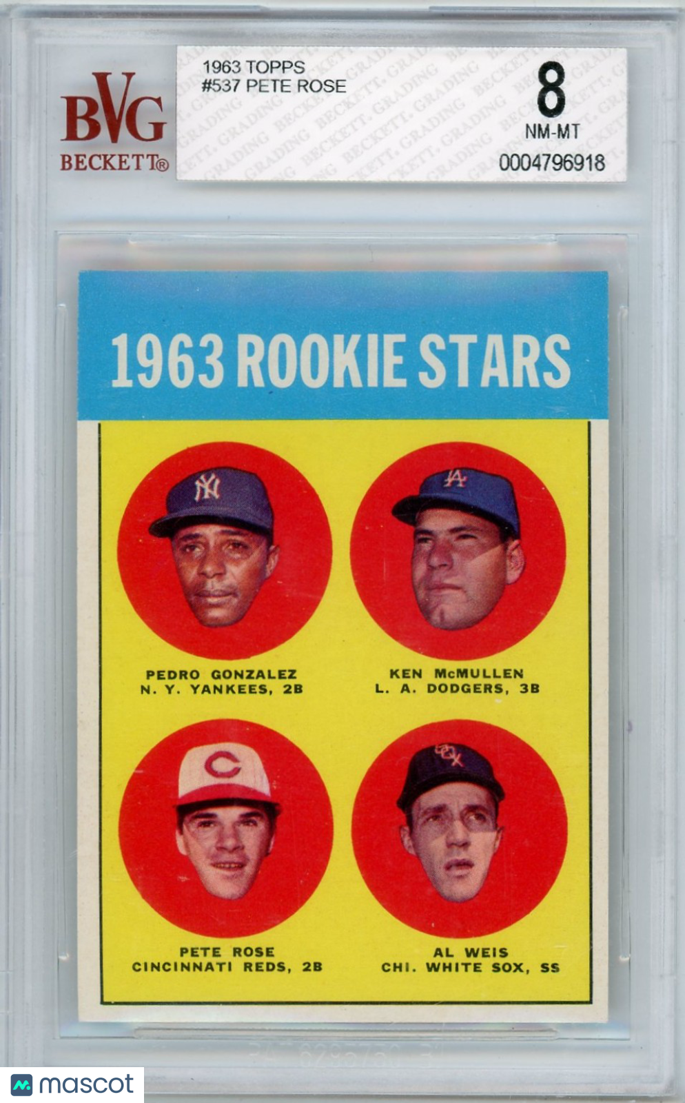 You are purchasing a 1963 Topps Pete Rose #537 BVG 8.