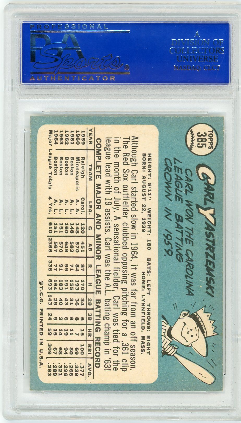 You are purchasing a 1965 Topps Carl Yastrzemski #385 PSA 8.