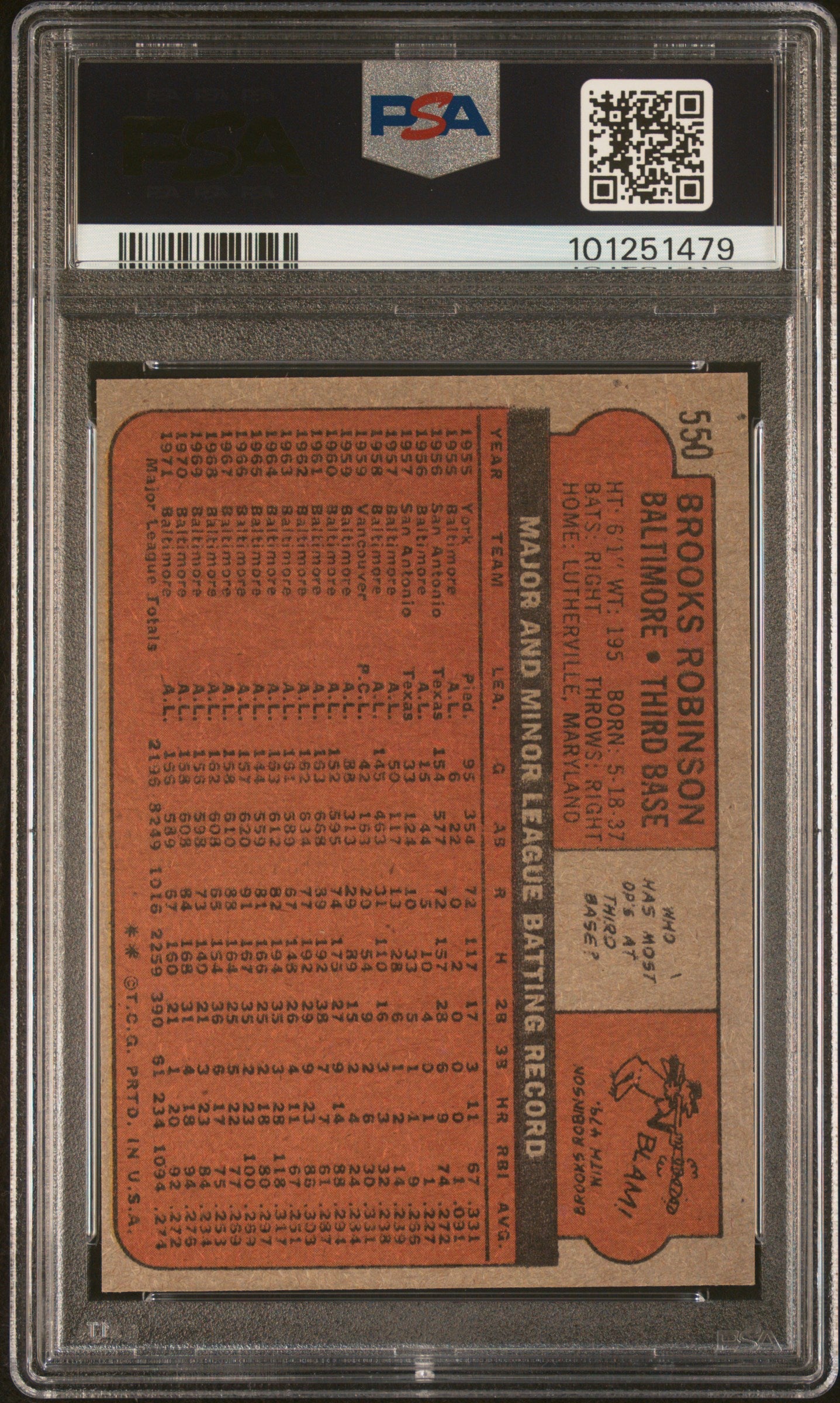 You are purchasing a 1972 Topps Brooks Robinson #550 PSA 7.