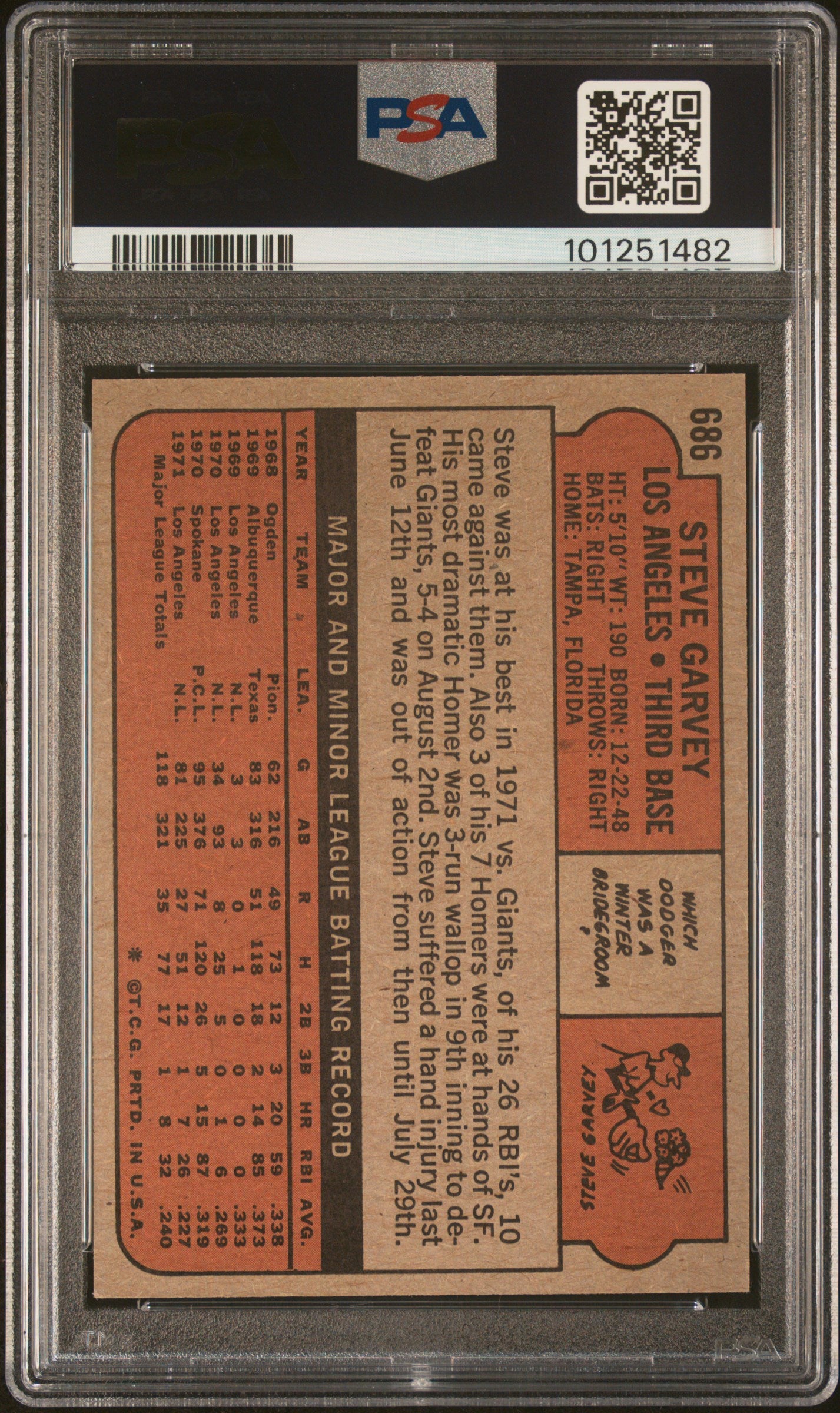 You are purchasing a 1972 Topps Steve Garvey #686 PSA 7.