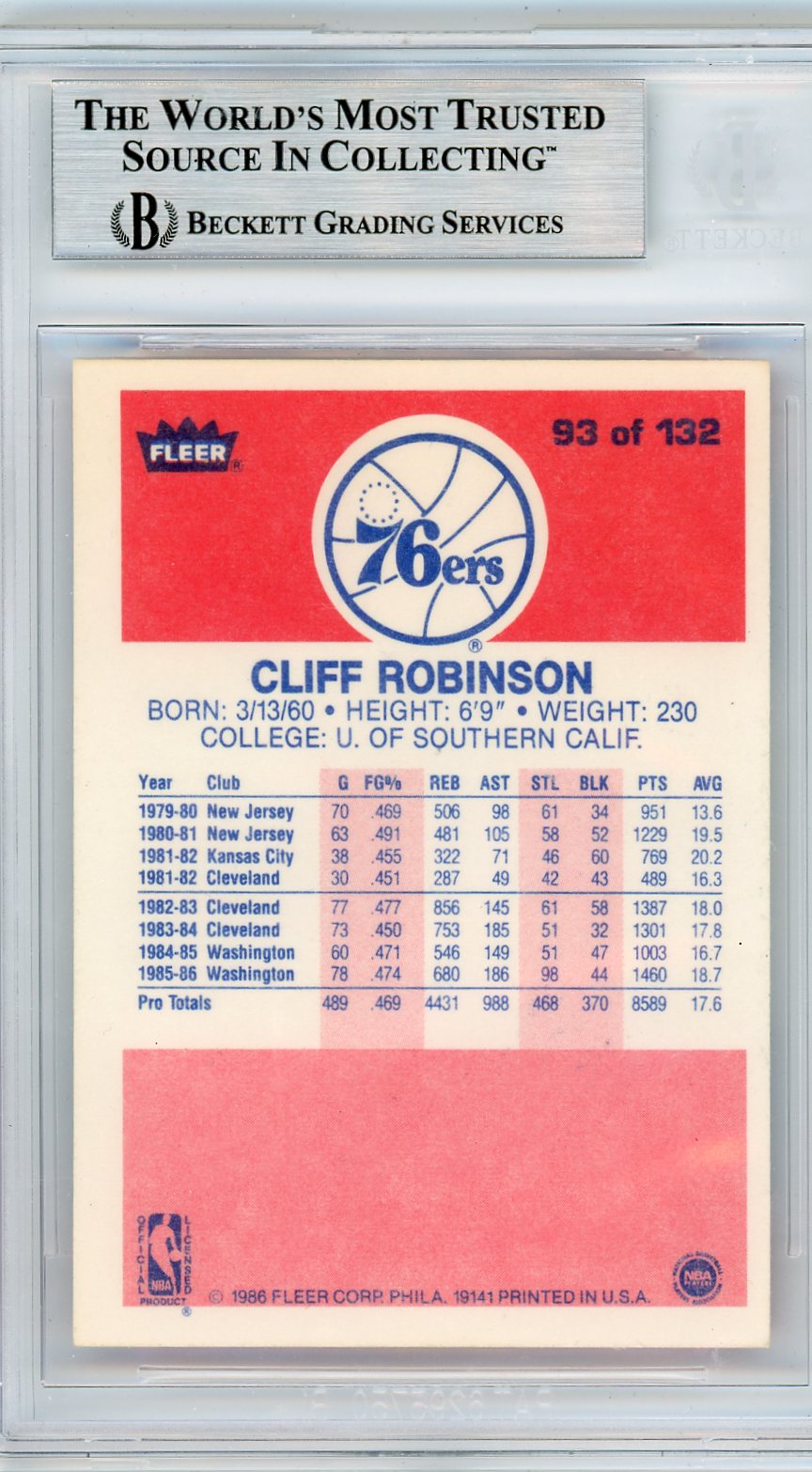 You are purchasing a 1986 Fleer Cliff Robinson #93 BGS Authentic BAS Auto Authentic.