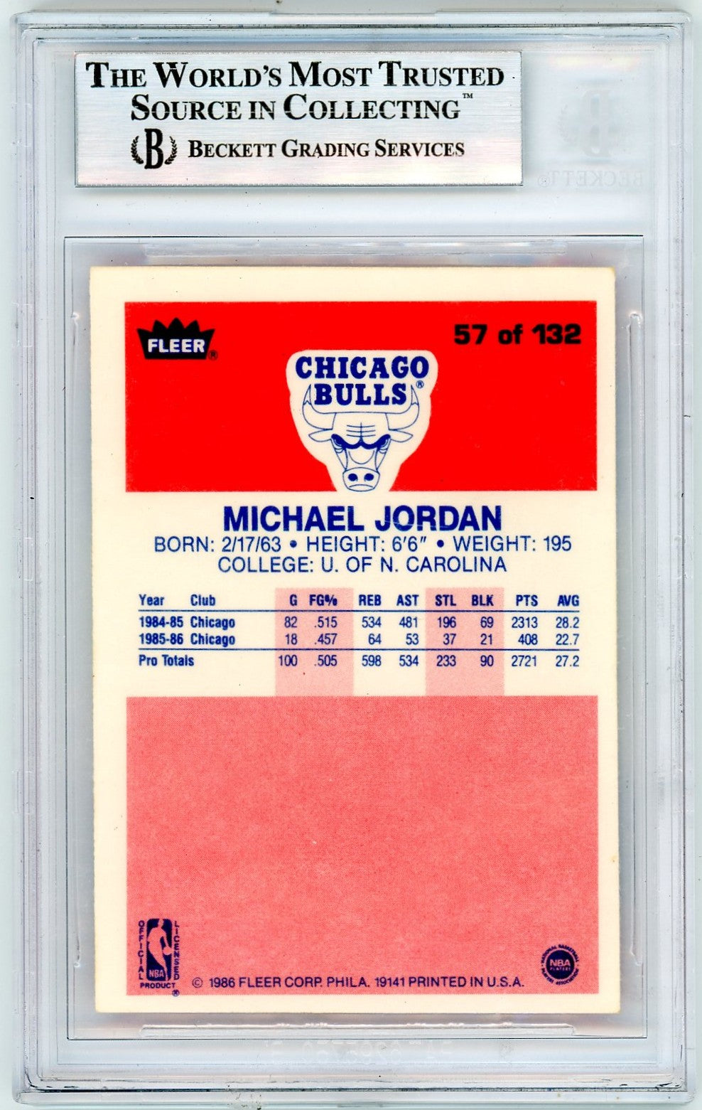 1986 Fleer Michael Jordan #57 BGS 8.5 Rookie
