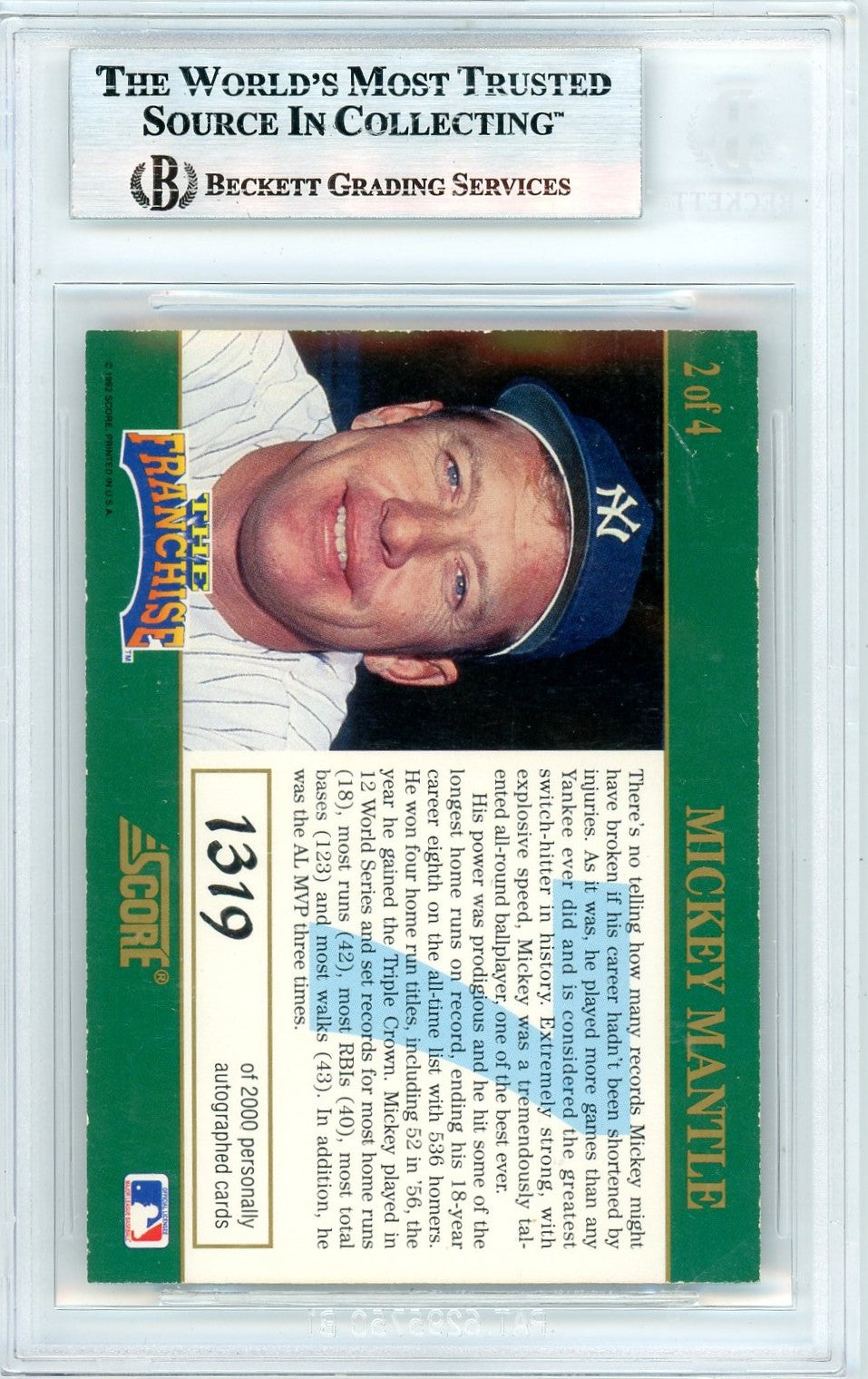 You are purchasing a 1992 Score Franchise Autographs Mickey Mantle #AU2 BGS BAS Auto Authentic.