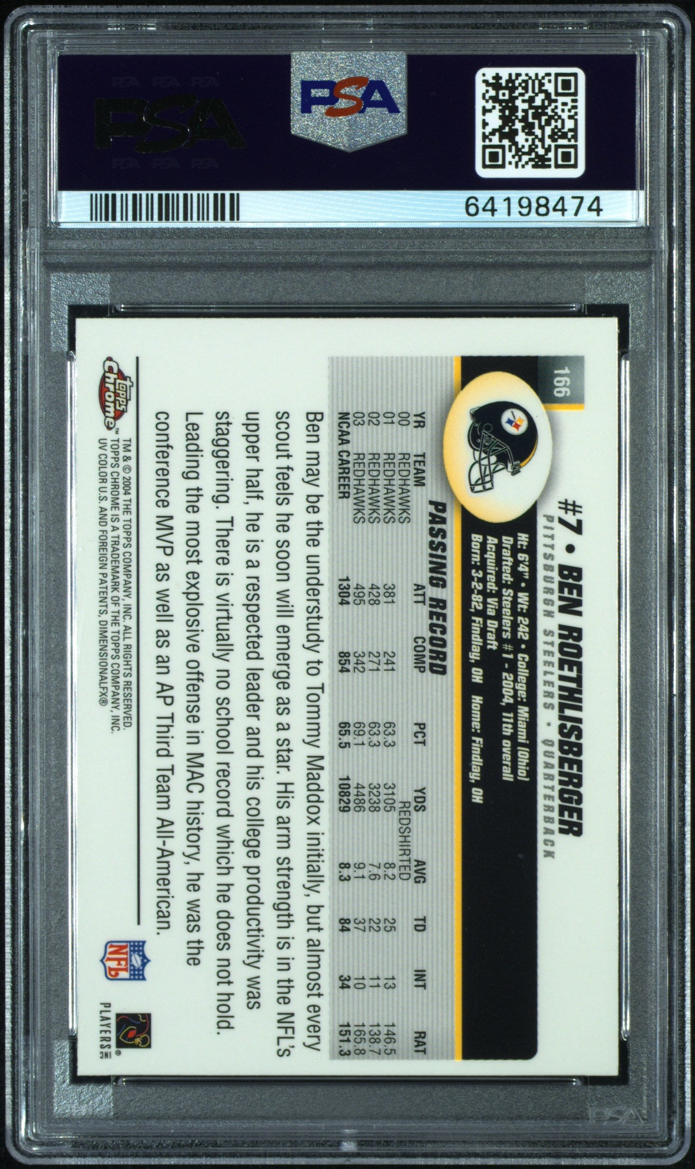You are purchasing a 2004 Topps Chrome Ben Roethlisberger #166 PSA 10.