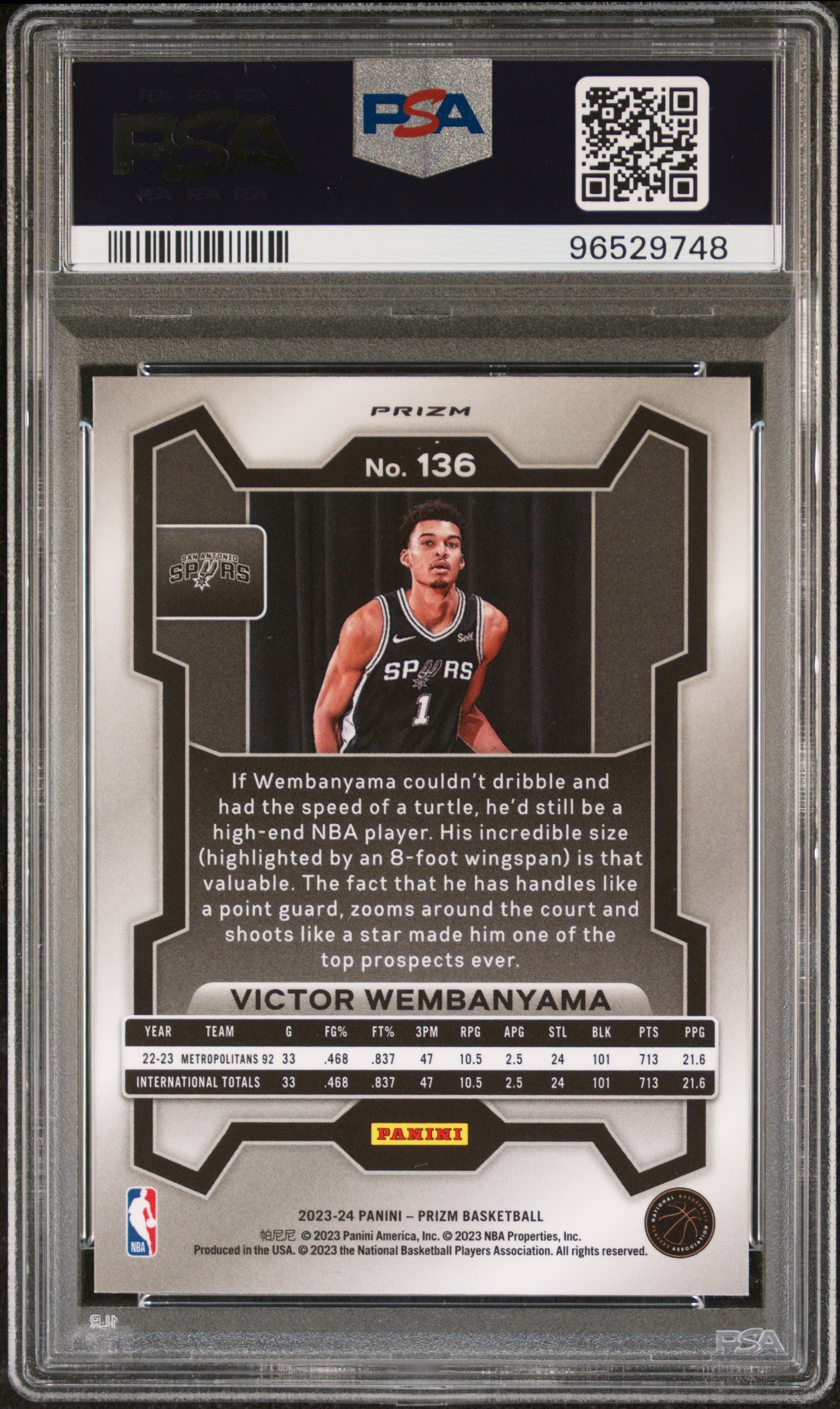 You are purchasing a 2023 Panini Prizm Victor Wembanyama #136 Silver PSA 10.
